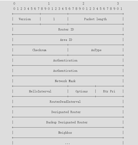 图1 OSPF Hello报文格式