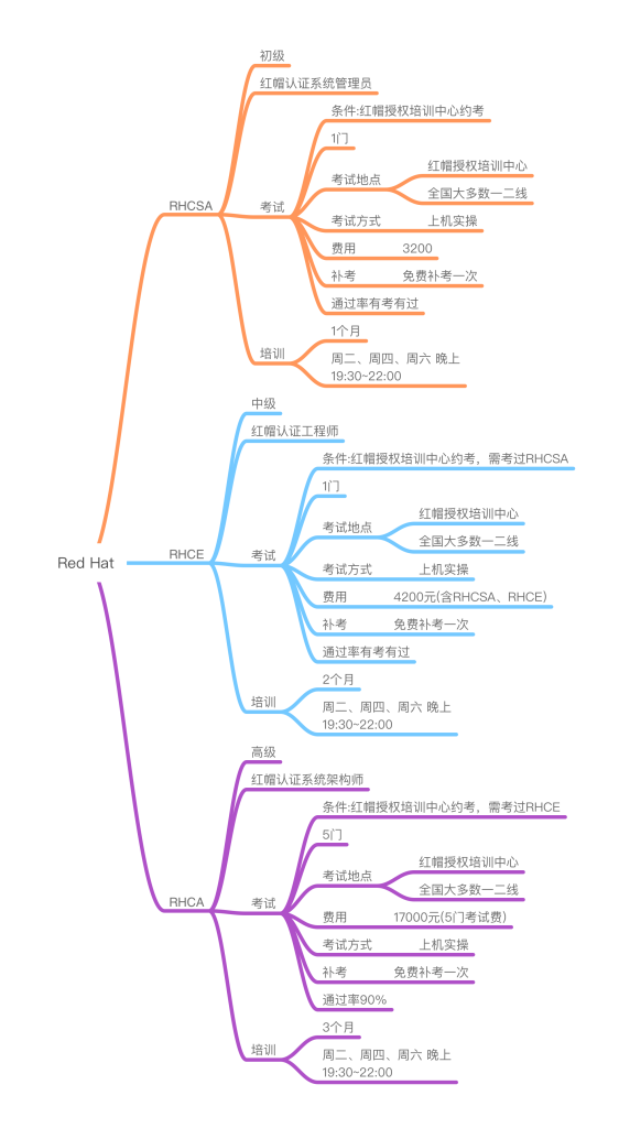 红帽Linux分三个等级,供Linux从业者学习和进阶
